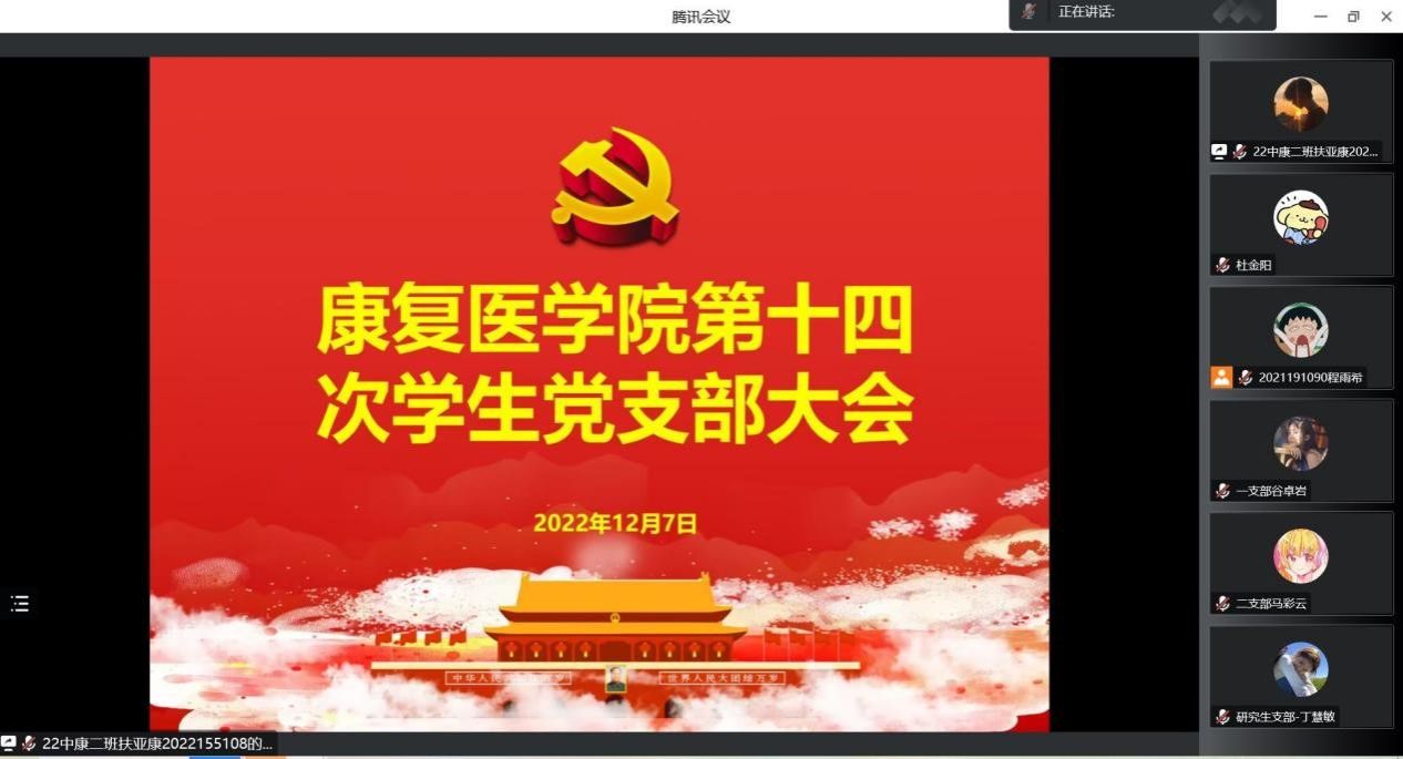 (图/文 张羽萍)2022年12月7日下午1时,十大外围足球平台官网 学生第一党支部通过线上腾讯会议召开第十四次党员大会。会议主题为学生党支部书记换届调整、讨论预备党员接收和预备党员转正等事宜。学生第一支部书记张羽萍老师、党支部全体正式党员和预备党员以及发展对象参加了本次会议,会议由张玉源主持。