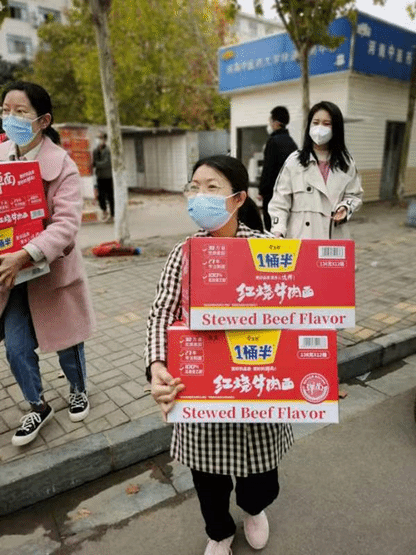 疫情防控先锋队“送餐员”在宿舍楼前集结