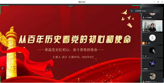 课上,高宇同志围绕党的百年征程,讲述了共产党人不变的初心和使命。从党成立初期,带领中国人民推翻“三座大山”,寻求民族独立和人民解放,到新时代的习近平新时代中国特色社会主义思想,党以前所未有的决心和力度冲破思想观念的束缚,突破固化的藩篱,坚决破除各方面体制机制弊端,积极应对风险挑战,开启了气势如虹、波澜壮阔的改革进程。纵观中国共产党的发展史,无论是处于顺境还是逆境,都始终围绕“为中国人民谋幸福、为中华民族谋复兴”这一初心使命前进。随后,她结合自己对“初心”含义和意义的思考,深入探讨了不忘初心的具体含义和深刻内涵。一是理想和信念,即当初确立的崇高理想和坚定信念。二是忠诚和感恩,即当年入党之时对党的忠诚和感恩。三是坚持和奋斗,即当年先辈们对革命事业的坚持和奋斗。
