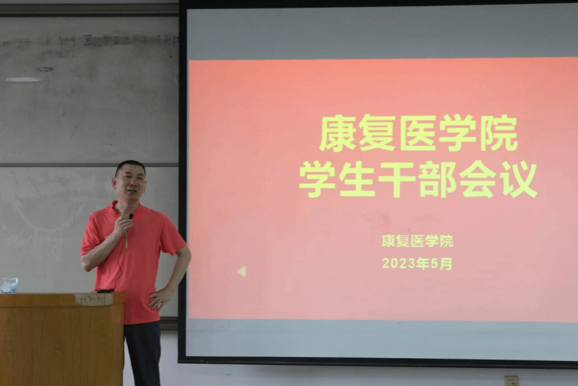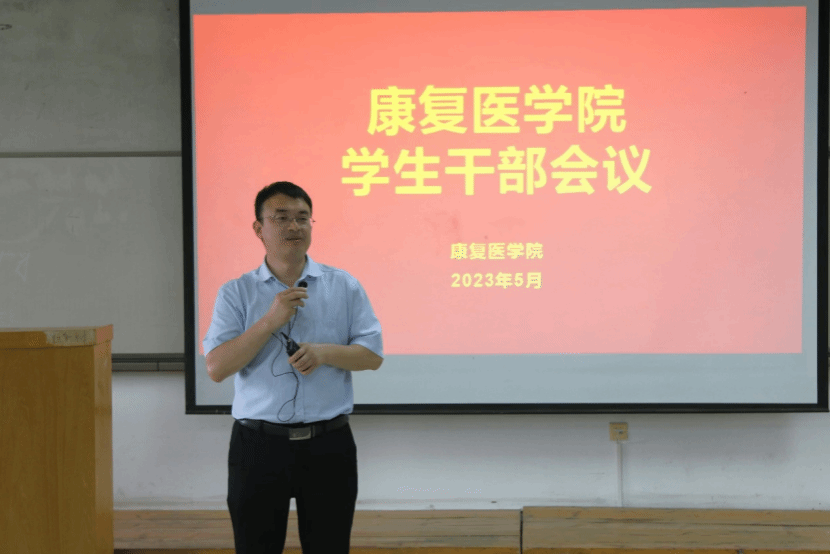 副院长许国防对近期学生教学、实习等工作进行了通报,指出学生干部应秉持着康复精神做好十大外围足球平台官网 的工作。许院长要求,学生干部不仅要做工作的先进,更要做学习的榜样。要平衡好学习与工作的关系,发挥学生干部的带头作用,提高自己的执行力,做好上传下达,更好的成为一名合格的学生干部,推动十大外围足球平台官网 的发展,做“时代弄潮儿”。