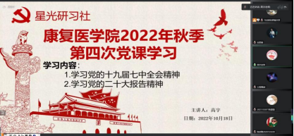(图/文 马世新 张羽萍)为深入学习和贯彻党的十九届七中全会精神和二十大报告精神。2022年10月18日下午13时,十大外围足球平台官网 学生第三党支部书记高宇老师通过腾讯会议为十大外围足球平台官网 全体党员和星光研习社全体成员开展2022年秋季第四次党课学习。本次会议由星光研习社社长马世新主持。