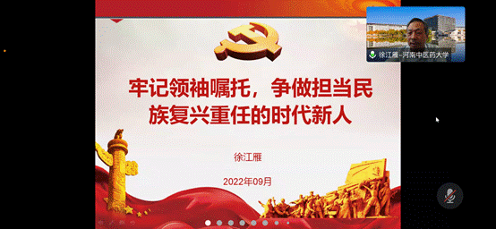 (文/张羽萍 图/刘思嘉)为了进一步提高党员素质,加强基层党组织建设,9月28日下午4时,学校党委委员、副校长徐江雁以“牢记领袖嘱托,争做担当民族复兴重任的时代新人”为题,通过腾讯会议平台为十大外围足球平台官网 师生党员讲“开学第一课”。十大外围足球平台官网 领导班子成员、辅导员、星光研习社学生党员、积极分子参加了学习,第一课由十大外围足球平台官网 党委书记张运克主持。徐江雁副校长以“人生的扣子一开始就要扣好”为核心,从领袖嘱托、肩负任务、青春寄语三个方面为要点为同学们开展党课。徐校长从毛泽东主席和习近平总书记讲话中总结出领袖们对青年人和党员的一些具体要求和嘱托,激励全体党员树立远大理想,脚踏实地砥砺奋斗。徐校长要求,全体教工党员要时刻肩负起立德树人的根本任务,重视组织建设,重视三全育人工作。他勉励青年大学生要坚定理想信念,学好专业知识,注重德智体美劳全面发展。