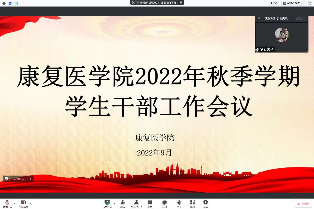 本网讯(文/杨富斌 图/杨一晨)为做好新学期学生返校和新生开学的准备工作,十大外围足球平台官网 于9月2日19:30以腾讯会议形式召开2022年秋季学期学生干部工作会议。学院党委副书记孟长海、副院长许国防、分团委副书记高宇和全体辅导员老师、学生干部参加了会议。会议由学生会主席罗澜主持。