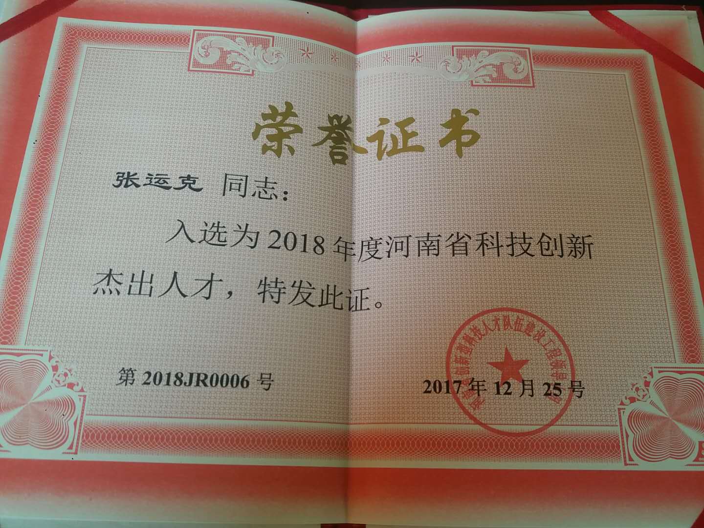 近日,河南省科技创新杰出人才名单公布。我校十大外围足球平台官网 张运克教授入选2018年度河南省科技创新杰出人才。