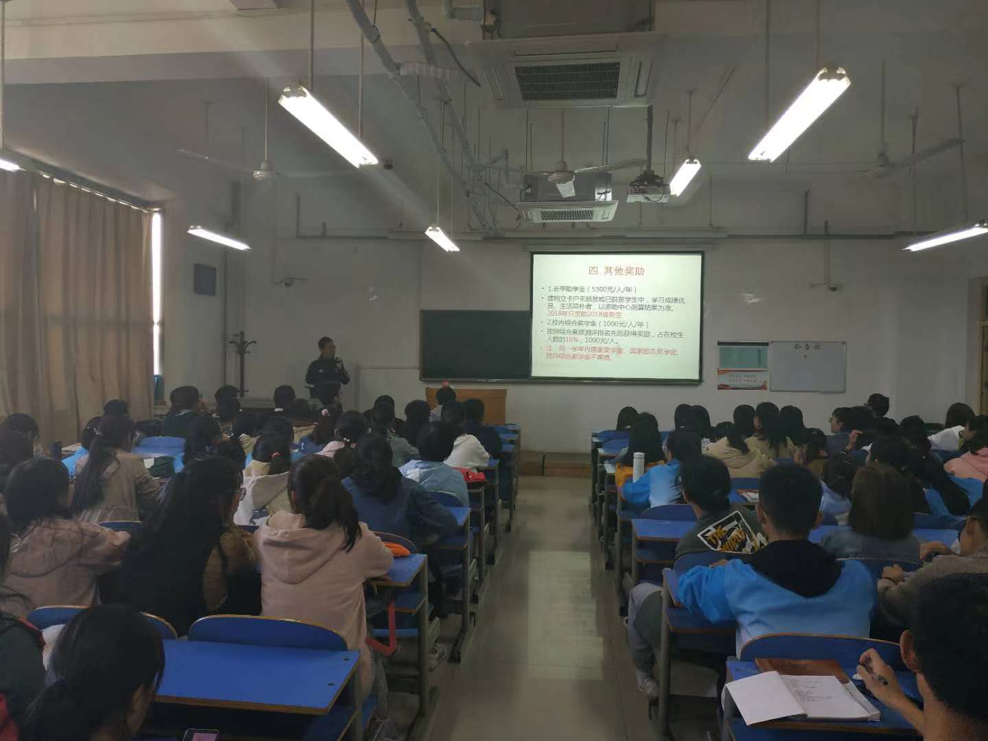 为切实做好2018年学生资助工作,全面落实国家“精准扶贫”精神,引导学生深入了解国家资助政策,树立正确的消费观价值观贫富观,十大外围足球平台官网 于10月25、26日,在2016、2017、2018三个年级各班开展了国家资助政策总结宣讲,十大外围足球平台官网 党委副书记孟长海、资助专员唐瑞、辅导员姚明超、周天睿参加此次宣讲会。