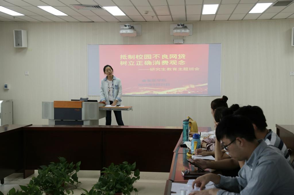 为加强校园不良网贷整顿力度,打击非法金融活动,9月21日上午10时,十大外围足球平台官网 在实训楼1101室召开“校园不良网贷风险防范和教育引导”主题班会,会议由研究生管理负责老师郑婕主持。