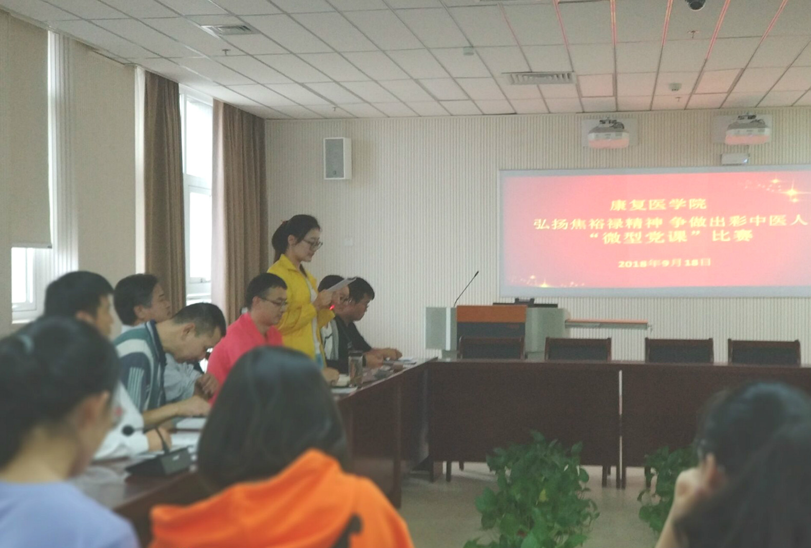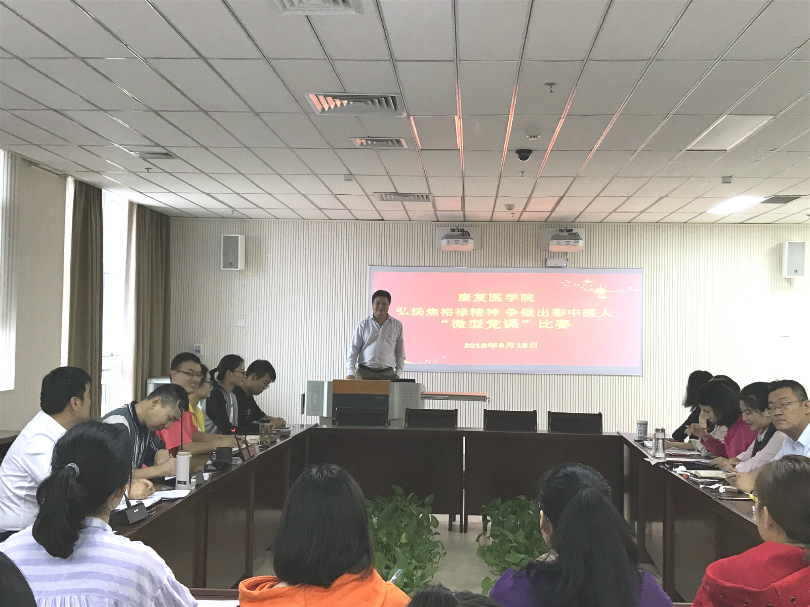 9月18日下午,十大外围足球平台官网 党委组织全体党员以“弘扬焦裕禄精神 争做出彩中医人”为主题,开展了微党课比赛活动。本次活动特别邀请7名在校大学生做评委。