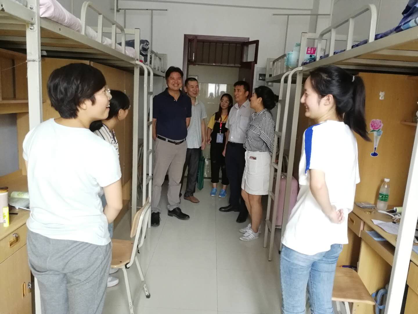 领导老师走进女生宿舍看望新生