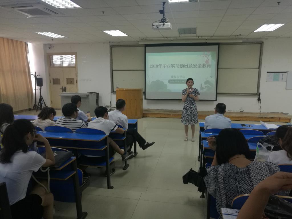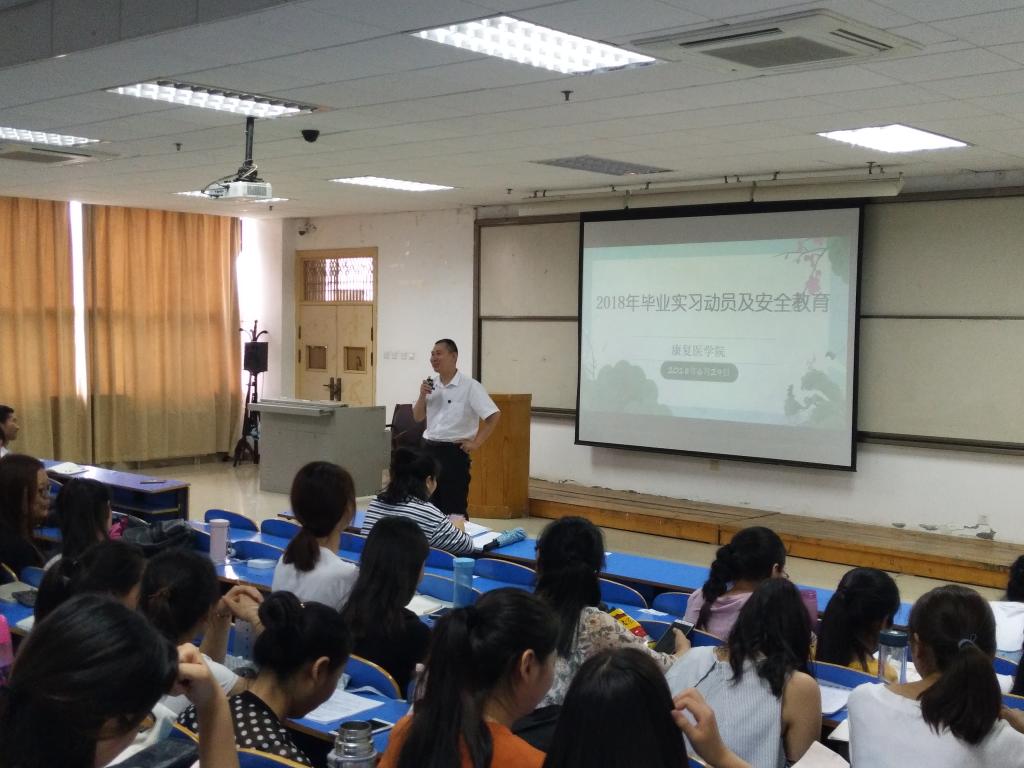 孟长海副书记首先对同学们进行了安全教育,梳理了近期发生的几起人身、交通、情感、溺水等安全事件,叮嘱同学们要珍惜好实习机会,务必牢记人身安全这一底线,强化安全防范意识、掌握安全防护方法,要开开心心的去实习,平平安安的回学校,顺利完成一年的实习任务。班主任代表、校党委组织部副部长马赟做了实习动员,她介绍了此次实习轮转和基地选择的新变化,并对实习生提出以下要求:一是要多看、多听、多问、多记,提高学习主动性;二是要注重学业和情商的双重发展,重视学习、勤于自省,早日实现学业和情商的双成功;三是要树立成人观念,有责任意识和担当意识。希望同学们勇于抓住就业机遇,顺利实现就业目标。