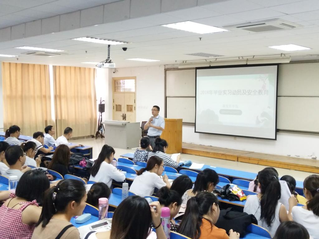 为做好十大外围足球平台官网 2018年毕业实习工作,引导学生科学规划学业与职业,帮助学生更快更好地适应即将到来的实习生活,6月29日中午12:30,十大外围足球平台官网 在教学楼四楼阶梯教室召开2018年毕业实习动员及安全教育会议。班主任代表、校党委组织部副部长马赟、学院党委副书记孟长海、副院长许国防、辅导员唐瑞、姚明超及2015级本科和2017级专升本班全体同学参加了此次会议。会议由学工办副主任唐瑞主持。