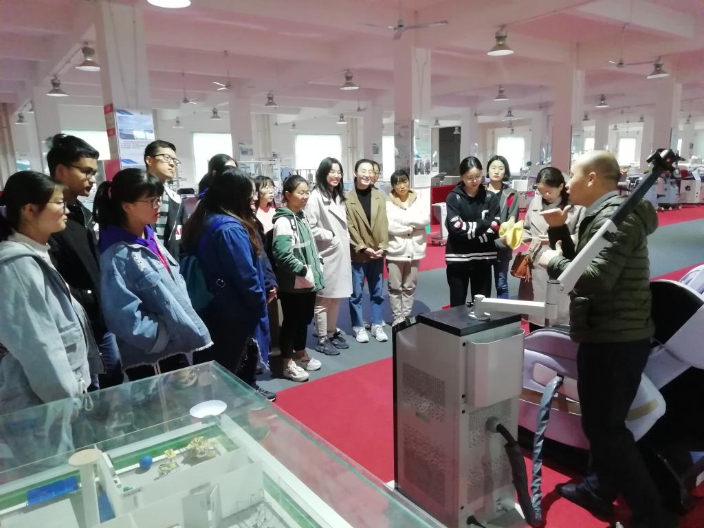 技术人员给我们详细的讲解了相关器械的使用方法并且带领同学们参观了操作间并进行亲身体验。翔宇公司拥有452项发明专利,上千种康复方面相关设备。