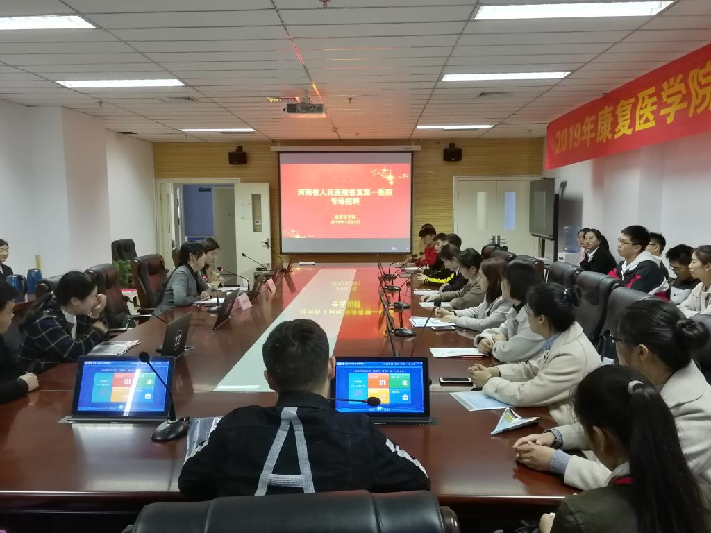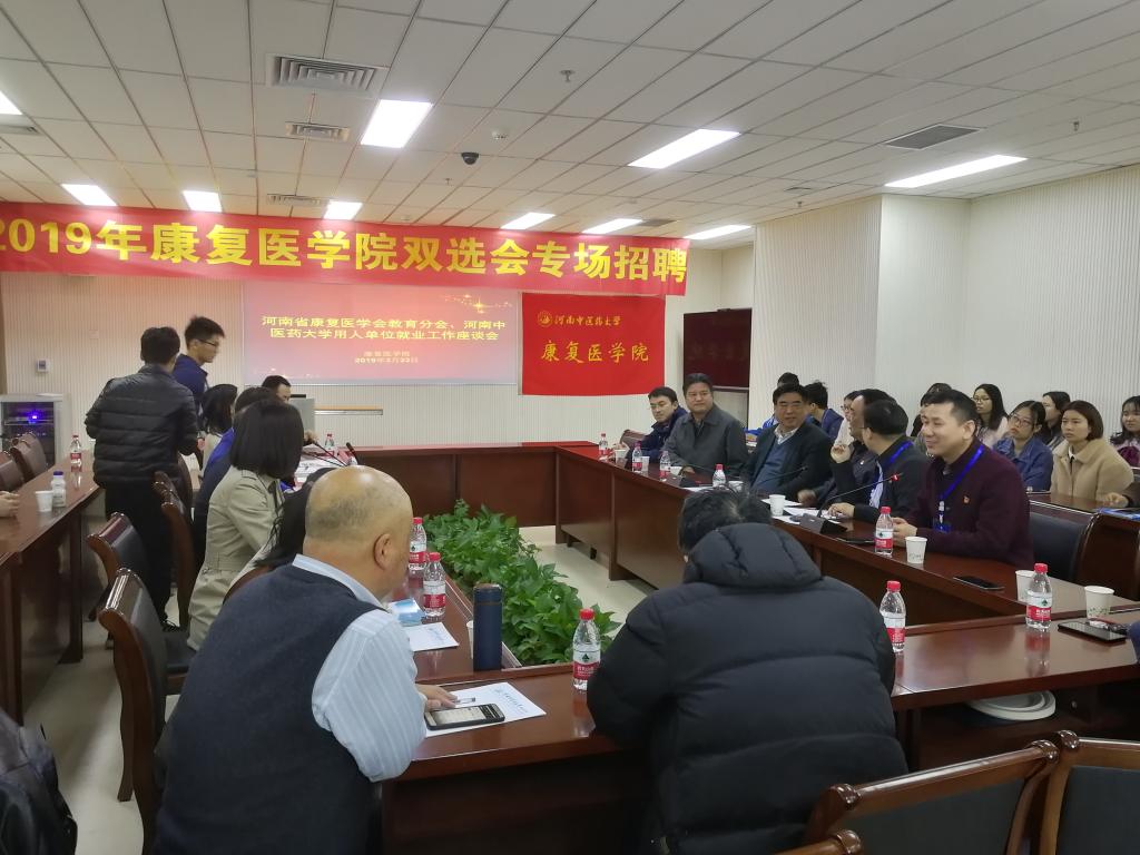 3月23日上午10:30,“河南省康复医学会教育分会、十大外围足球平台官网用人单位就业工作座谈会”在实训楼1101会议室举行。十大外围足球平台官网 张运克书记、冯晓东副院长、许国防副院长、刘斌副院长和来自11家用人单位人力部门或康复科的主管参加了会议。十大外围足球平台官网张小平副校长、河南省康复医学会康复教育分会会长、澍青医专校长王左生教授出席。部分毕业生也参加了会议。