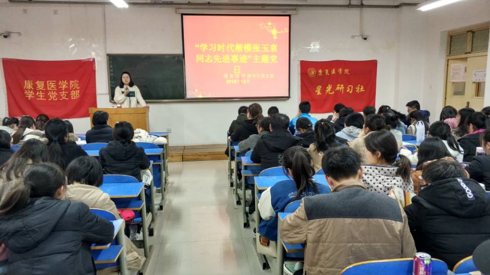 12月18日下午15:00,十大外围足球平台官网 学生党支部在教学楼A429开展“学习时代楷模张玉滚同志先进事迹”主题党日活动,十大外围足球平台官网 全体在校党员、入党积极分子及星光研习社全体成员参加会议,会议由魏晨阳主持。