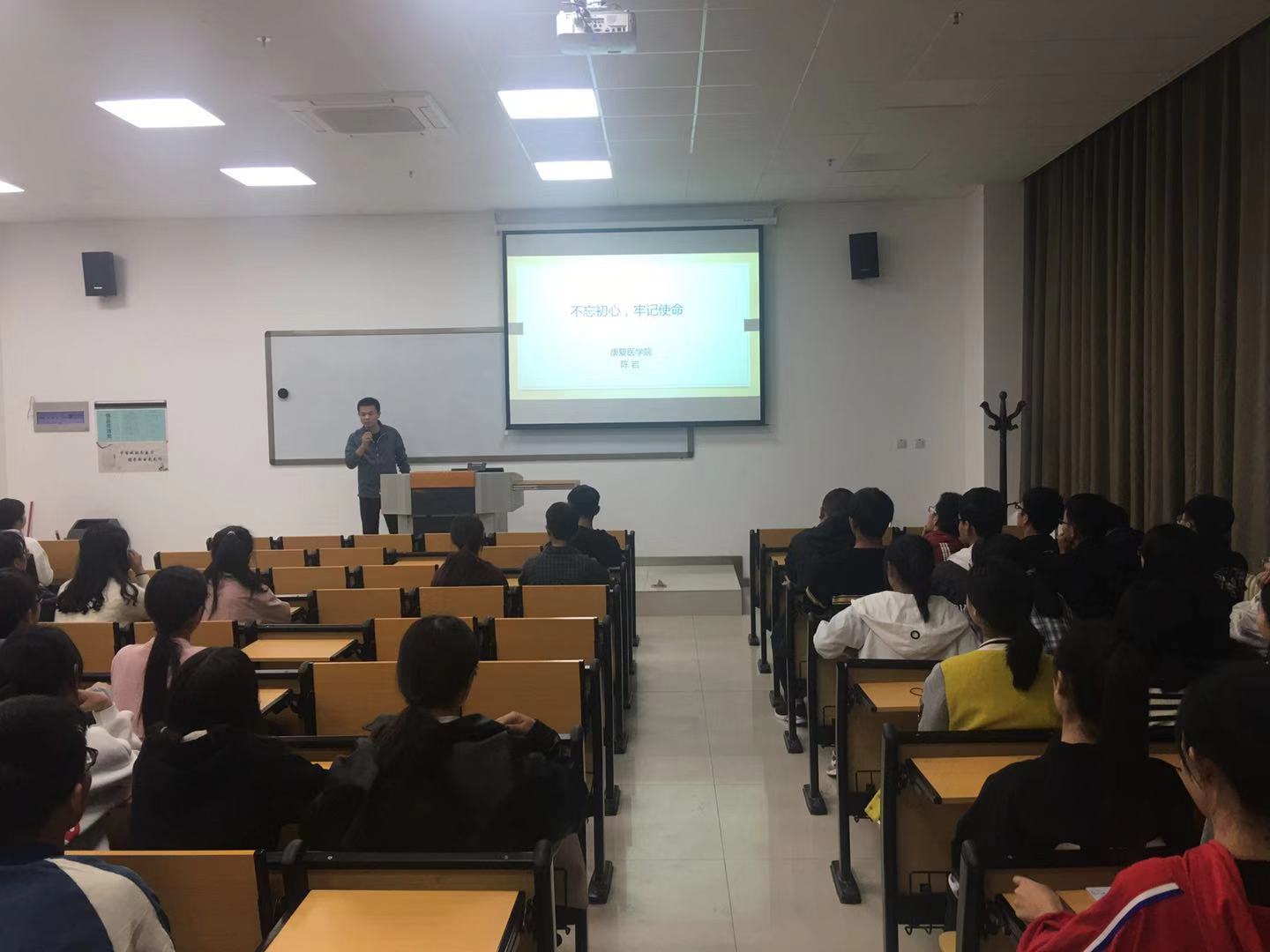 11月2日,康复治疗教研室党支部书记陈岩在教学楼A104教室为2018级康复治疗学本科生上了一堂题为《不忘初心、牢记使命》的党课。