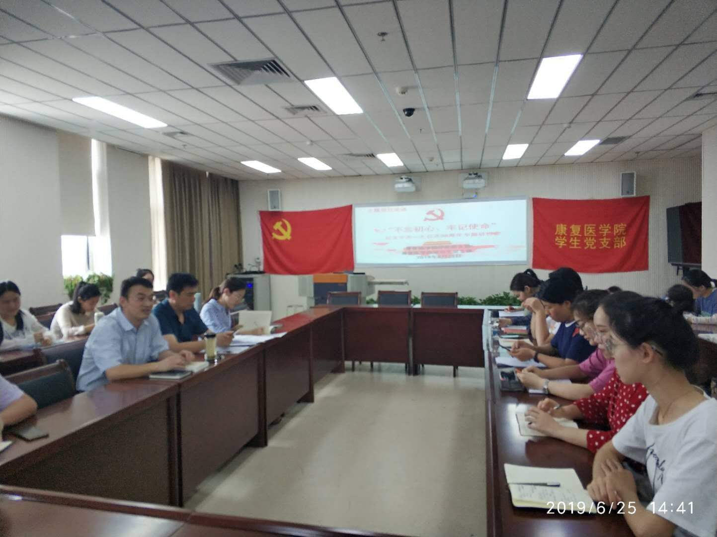 6月25日下午14:30,在实训楼1101会议室,为纪念中共一大召开98周年,十大外围足球平台官网 研究生党支部召开“不忘初心、牢记使命”主题党日活动。研究生支部全体党员及部分本科生党员代表参会,会议由党委委员刘斌同志主持。