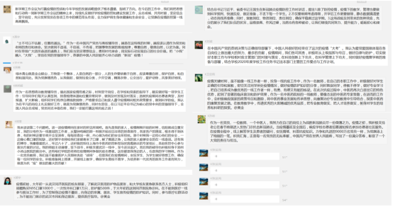 最后,张运克书记做出总结:寒假期间,十大外围足球平台官网 广大党员积极响应党的号召,做好自我防控,做好宣传,自愿捐款,积极参加志愿者活动,做好学生的健康排查,认真准备网课等,每个党员就是一面旗帜。在目前这个阶段,我们要按照别书记、许校长在全校工作会议讲话的要求,把防控疫情和重点工作有机结合起来,党员要发挥带头作用,在关键时期,不能松懈,在做好自我防护的同时,积极参加学生的健康摸底排查工作,确保开学时不留隐患。坚决杜绝走亲访友,避免不必要的聚集活动。坚守各自的工作岗位,尽职尽责,提高政治站位,以实际行动打赢防控疫情战役,做坚强的战士,为党旗增添亮色,使党旗更加鲜艳。(撰稿人:黄金)