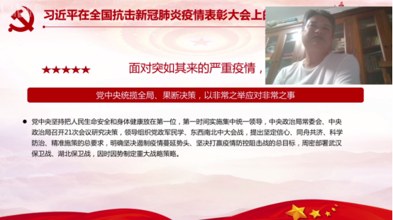 直播课上,张运克书记带领大家回顾了新冠肺炎疫情爆发的全过程,介绍了近期国内疫情的控制情况,以及海外部分国家的疫情发展状况,勉励同学们真正做到把此次疫情当做学习的教材,锤炼大学生坚强的品格。张书记指出,疫情是一种磨难,更是对青年大学生的考验。同学们作为医学生,一是要刻苦学习专业知识,学好中医经典和康复医学知识,掌握治病救人的本领做到德才兼备;二是要始终牢记医学生为人民献身的使命,要胸怀大志、理想远大,做德智体美劳全面发展的高素质医学人才。