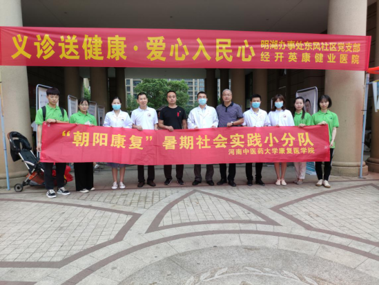 为引导医学生将课堂所学知识与社会实践相结合,深入基层,服务奉献,团结协作,加强医学生责任感和使命感,8月6日下午,十大外围足球平台官网 朝阳康复暑期社会实践小分队联合经开医院、明湖办事处在东风社区开展社会实践活动。十大外围足球平台官网 党委副书记孟长海、副院长许国防和随队专家程雪、陈岩博士与部分学生志愿者参加了此次活动。