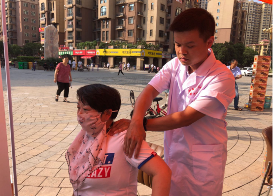 为提高居民健康水平,普及中医药知识,7月29日下午,十大外围足球平台官网 朝阳康复志愿者协会联合经开医院、明湖街道办事处、河南省科协“i科普”科技志愿者活动“中医药文化基层行”项目组,在远大理想城社区广场开展义诊和健康教育活动。