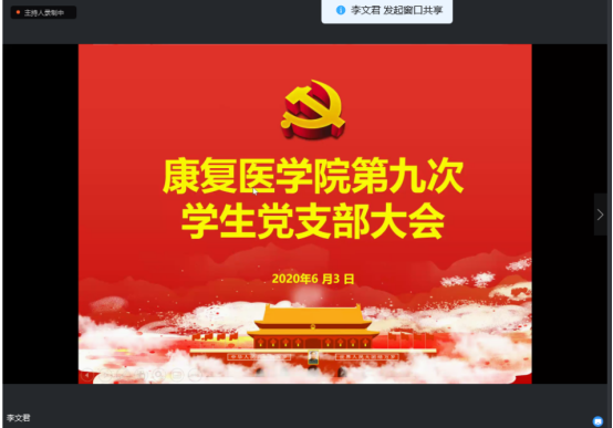 大家共奏《国际歌》,会议圆满结束。本次支部大会是在疫情期间采取的网上视频会议形式召开的会议,在疫情期间广大党员干部不辞辛苦,冲锋在前,积极参与疫情防控等各项工作,涌现出了一批先进个人。党支部大会的召开,进一步强化了组织建设,鼓舞了士气,为取得疫情防控战役的胜利奠定了组织保障。(撰稿:高宇)