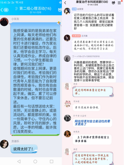 为了解同学们在家网课学习情况和心理动向,帮助学生明确学习目标、及时化解同学们居家学习的心理焦虑和压力,激发学习热情树立阳光心态,3月31日下午3点,十大外围足球平台官网 在2018级中医康复专业学生中采用朋辈式学习和心理交流工作模式,创新疫情期间心理学习工作新模式。