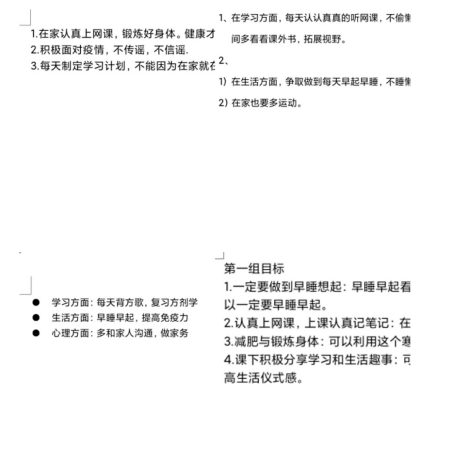 在活动中,每个小组都制定出了符合本组同学近期以及未来发展的学习、生活目标。如在学习方面,同学们制定的目标是每天背会一个方剂方歌和20个新单词,以积极的态度对待自己的专业课和即将到来的四六级考试。在生活方面,早睡早起,戒掉熬夜的坏习惯,坚持体育锻炼,在获得好身材的同时提高自身的免疫力。在心理方面,多和家人沟通,学会和同学们分享交流,对于当前的生活保持良好的心态。在纪律方面,要坚持按时打卡不动摇,在家在校一个样,做守纪律的好学生。
