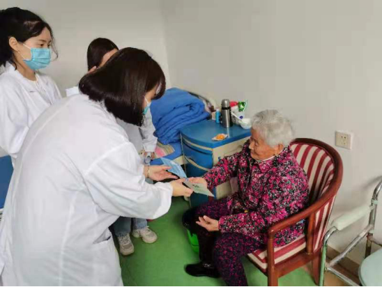 此次健康宣教活动在养老院住院楼二层举行,全程历时四个多小时,在研究生党支部书记郑婕和辅导员黄金的带领下,2020级18名研究生为半身不遂、头晕头痛、运动损伤、吞咽障碍、颈肩腰腿痛等约30余位老人进行了耐心细致的解答,就有关康复锻炼、中医指导、健康方式等问题进行指导。活动现场,直接为老人进行颈、肩、腰、腿痛的康复评估,以及中低频治疗仪的操作治疗,并为其制定相关康复计划,同时为存在肢体运动障碍、吞咽障碍的患者进行康复指导、健康宣教。随后,志愿者们还通过发放宣传册、填写调查问卷等方式宣传康复治疗和健康常识,为老人讲解常见病、多发病的预防康复的重要性和必要性。此外为志愿者们的现场教学康复保健技能,老人、护工们认真学习,掌握了丰富的康复技巧和方法。