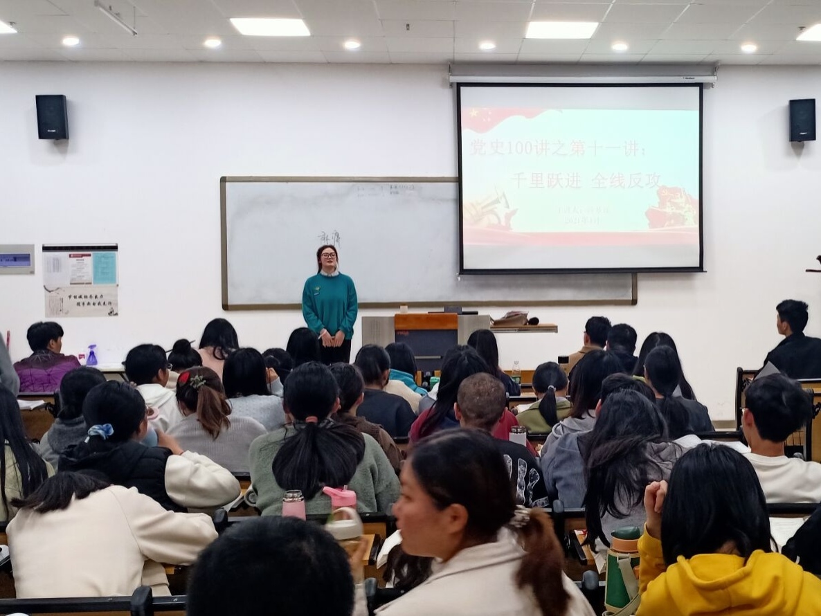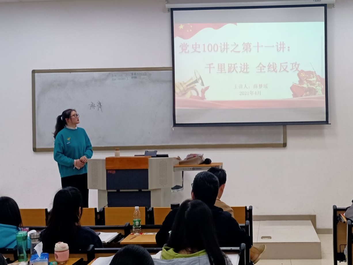 (文/姚明超 图/程凯)为激发十大外围足球平台官网 学子学党史的热情,带领全院广大团员青年深入了解党的历史,十大外围足球平台官网 特举办“凝聚青春力量,红色薪火相传”主题教育系列活动,在4、5月份持续进行红色基因进班级之党史100讲,通过一个个党史小故事的学习,带领同学们重温党史,感悟中国共产党一路走来的辉煌历程。2021年4月21日开展党史100讲之第十一讲:千里跃进,全线反攻。