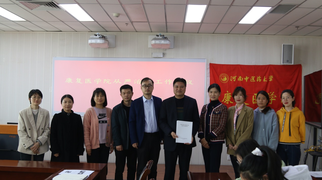 按照学校党委的统一安排部署,为进一步加强从严治党工作,十大外围足球平台官网 于2021年4月6日召开了“从严治党工作”会议,河南中医院大学党委委员、副校长徐江雁到会指导并发表重要讲话。党委书记张运克、院长冯晓东、党委副书记孟长海、副院长许国防、副院长刘斌、及全体教职工和部分学生党员代表参加了会议。会议由院长冯晓东主持。