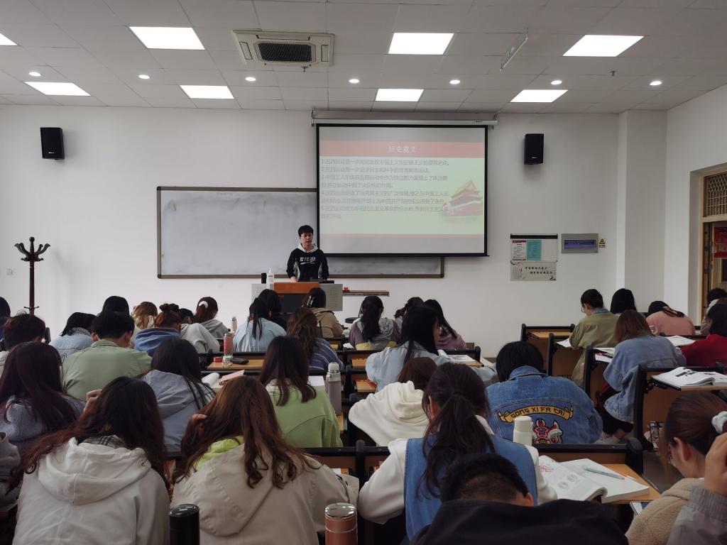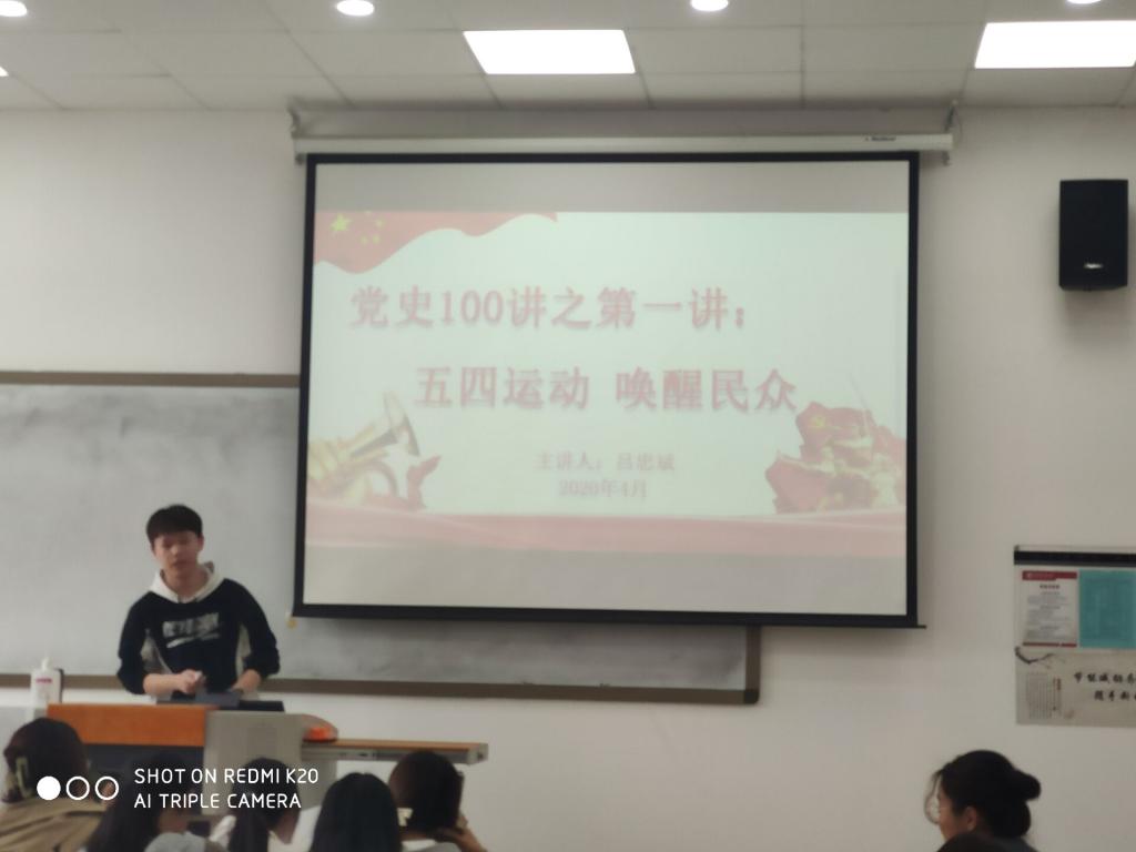 (文/姚明超 图/程凯)为激发十大外围足球平台官网 学子学党史的热情,带领全院广大团员青年深入了解党的历史,十大外围足球平台官网 特举办“凝聚青春力量,红色薪火相传”主题教育系列活动,在4、5月份持续进行红色基因进班级之党史100讲,通过一个个党史小故事的学习,带领同学们重温党史,感悟中国共产党一路走来的辉煌历程。2021年4月6日开展党史100讲之第一讲:五四运动,唤醒民众。