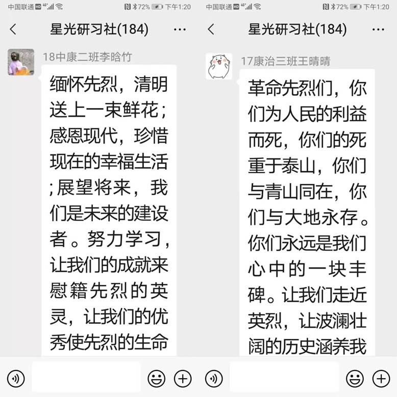 根据疫情防控的工作要求,在学院党委的指导下,十大外围足球平台官网 以线上活动为主体,面向全院师生组织开展“传承红色基因·清明祭英烈”主题教育活动。全院党员、积极分子200余人通过 “朝阳星光”公众号召开网上主题班会,举行网上升旗演讲,重温历史瞬间,网上发表感言及通过中国文明网平台献花等多种形式进行网上祭奠英烈活动,引导广大师生度过一个形式特殊、意义非凡的清明节。