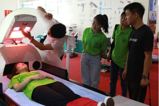 上午八点半,朝阳康复医疗服务团跟随翔宇医疗负责人来到展厅参观康复器材,映入眼帘的是产后康复、激光磁场理疗仪等高科技设备,服务团成员体验了盆底磁疗仪,该设备主要通过刺激盆底神经 从而治疗盆底肌源性疾病。下午重点参观了手功能康复区, 此类器械大多形式新颖,以小游戏的形式进行康复训练,具有趣味性,能够极大地激发用户进行手部康复训练的积极性。熏蒸康复设备选用草药煎制后产生的气雾进行熏蒸,达到治病、防病、保健、美容的目的。通过此次活动,同学们掌握了部分设备的基本操作,提高了社会实践能力,开拓了视野,增强了同学们对康复专业的自信。