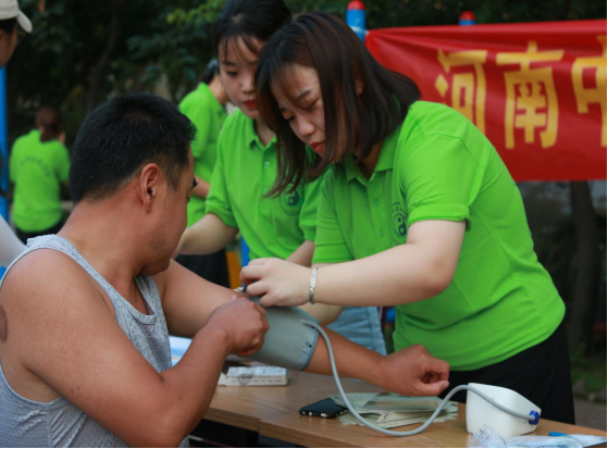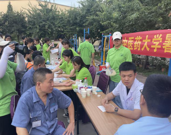 下午五点,朝阳康复医疗服务团成员们整理好义诊所需物资,整装待发。翔宇医疗员工们对朝阳康复医疗服务团的到来表示热烈欢迎。尽管天气炎热,服务团随队专家及义诊队员的热情丝毫不减。义诊现场由陈岩博士坐诊,用针灸、艾灸、推拿等中医特色疗法为群众义诊。朝阳康复医疗服务团的同学们分工明确,为员工们测血压、量血糖、教授八段锦、贴耳穴贴,并耐心地向员工们讲解“冬病夏治”的意义,介绍“三伏贴”的功效后因人施药。服务团的队员与前来义诊的员工亲切交流,贴心嘱咐他们要注意饮食,养成良好的生活习惯。老师同学们的热心服务受到了当地员工的一致好评,不仅提高了同学们对专业知识的掌握程度,更增强了基层群众对中医药的文化自信。