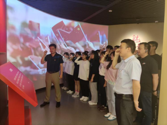 参观结束,党委书记张运克带领新党员入党宣誓和党员重温入党誓词。张书记指出:党史学习现场教学是党史教育的一种重要教学方法,学院全体党员要在认真学习党史学习教育指定书目、认真开展专题研讨交流的基础上,通过参观革命遗址旧址、革命博物馆等红色资源,进一步落实十大外围足球平台官网 党史学习教育计划,不断深入学习党史。在新的历史发展阶段,我们要认真学习习近平总书记视察河南时的讲话精神,以党建的高质量引领事业发展的高质量,全体共产党员要牢记初心使命、勇于担当作为,从革命历史事件中汲取进步的力量。通过学习党史,提振干事创业的精气神,为出彩中原,建设健康中国做出应有的贡献。