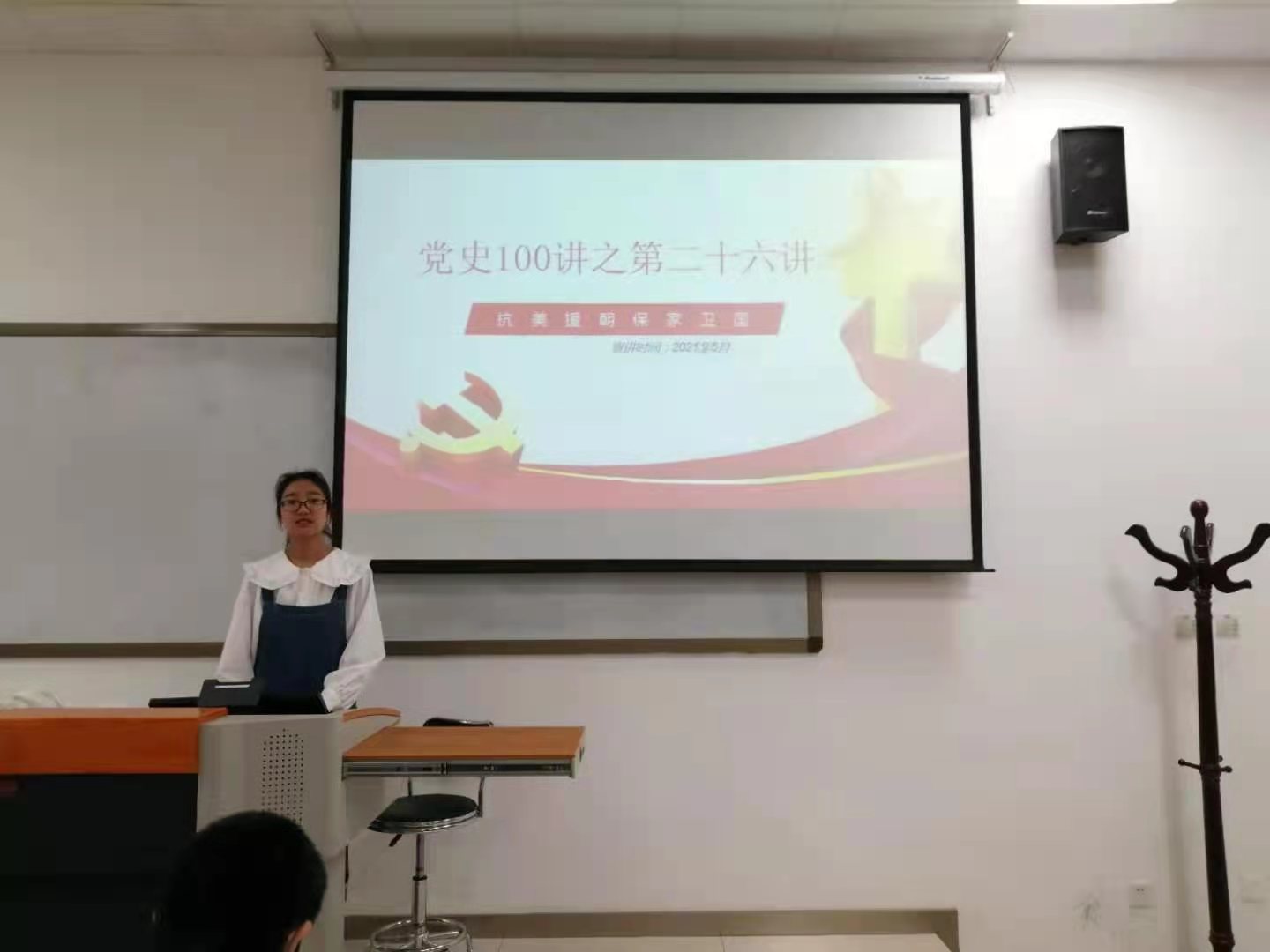 (文/姚明超 图/程凯)为激发十大外围足球平台官网 学子学党史的热情,带领全院广大团员青年深入了解党的历史,十大外围足球平台官网 特举办“凝聚青春力量,红色薪火相传”主题教育系列活动,在4、5月份持续进行红色基因进班级之党史100讲,通过一个个党史小故事的学习,带领同学们重温党史,感悟中国共产党一路走来的辉煌历程。2021年5月20日开展党史100讲之第二十六讲:抗美援朝,保家卫国。