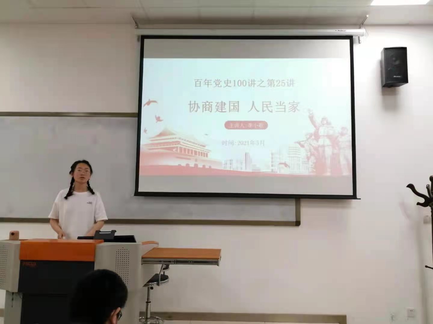 (文/姚明超 图/程凯)为激发十大外围足球平台官网 学子学党史的热情,带领全院广大团员青年深入了解党的历史,十大外围足球平台官网 特举办“凝聚青春力量,红色薪火相传”主题教育系列活动,在4、5月份持续进行红色基因进班级之党史100讲,通过一个个党史小故事的学习,带领同学们重温党史,感悟中国共产党一路走来的辉煌历程。2021年5月19日开展党史100讲之第二十五讲:协商建国,人民当家