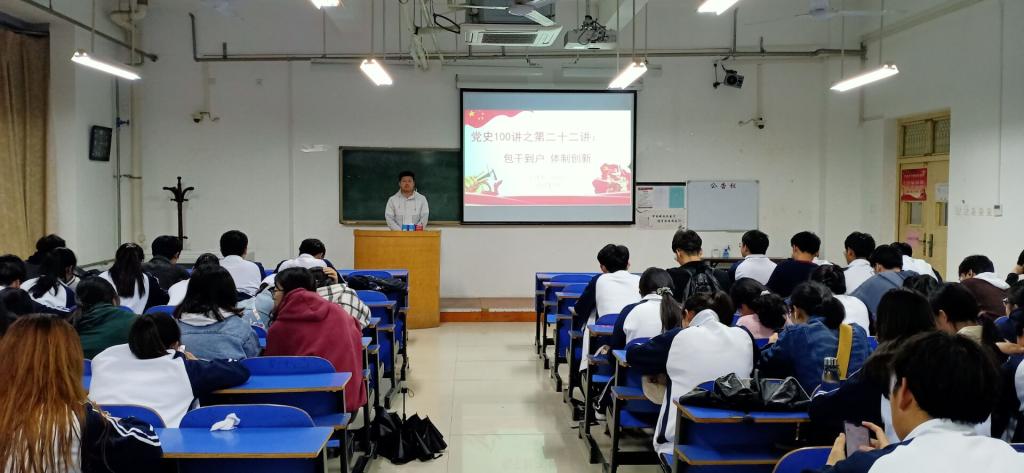 (文/姚明超 图/程凯)为激发十大外围足球平台官网 学子学党史的热情,带领全院广大团员青年深入了解党的历史,十大外围足球平台官网 特举办“凝聚青春力量,红色薪火相传”主题教育系列活动,在4、5月份持续进行红色基因进班级之党史100讲,通过一个个党史小故事的学习,带领同学们重温党史,感悟中国共产党一路走来的辉煌历程。2021年5月13日开展党史100讲之第二十二讲:包干到户,体制创新。