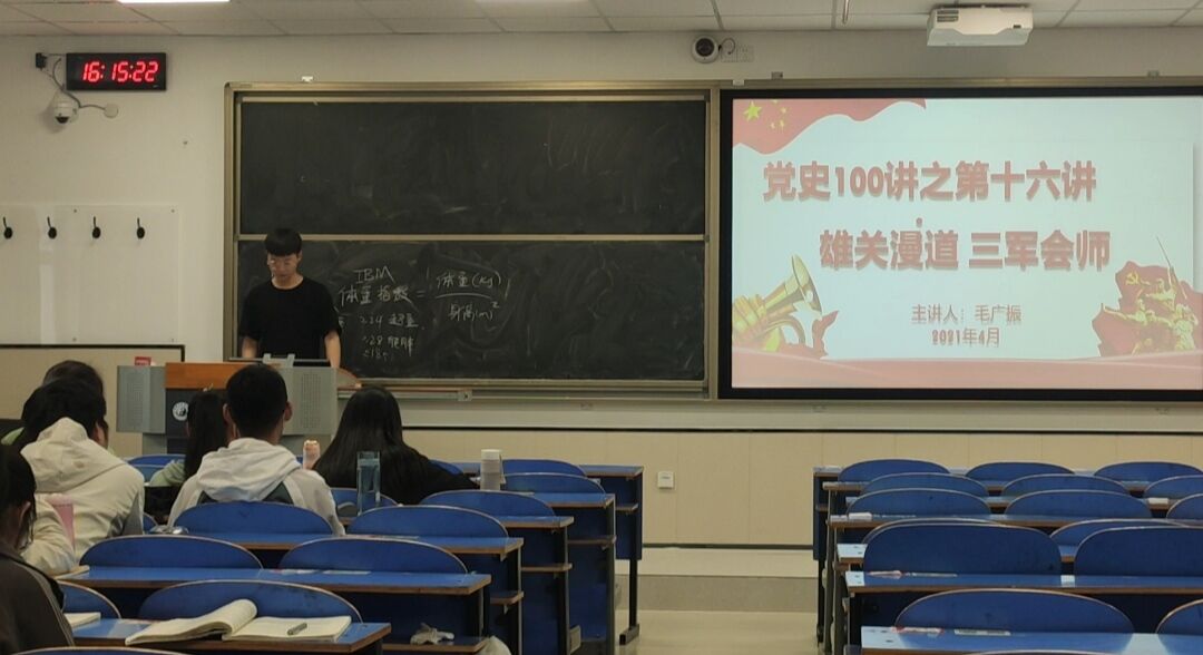 (文/姚明超 图/程凯)为激发十大外围足球平台官网 学子学党史的热情,带领全院广大团员青年深入了解党的历史,十大外围足球平台官网 特举办“凝聚青春力量,红色薪火相传”主题教育系列活动,在4、5月份持续进行红色基因进班级之党史100讲,通过一个个党史小故事的学习,带领同学们重温党史,感悟中国共产党一路走来的辉煌历程。2021年4月29日开展党史100讲之第十六讲:雄关漫道,三军会师。