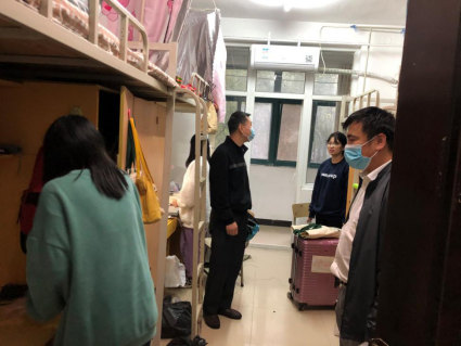 走访过程中,许国防副院长希望同学们要珍惜在校时光,鼓励同学们要积极调整学习状态,以更饱满的精神状态投入到新学期的学习中,希望大家把研究生作为一个新的起点,规划好三年的研究生生涯,以丰硕的成果为三年研究生生涯画上圆满的句号。刘斌副院长向同学们询问了返校途中和来校以后的安顿情况,并提醒在疫情防控常态化的情况下,要注意宿舍卫生,保障宿舍通风。同时,希望同学们能够在积极完成课业的基础上,注重体育锻炼,提升个人身体素质,以崭新的面貌和健康的体魄迎接新学期。研究生辅导员黄金深入了解每个寝室的学生个人情况,并亲切地与学生们做了心贴心的交流,希望同学们在以后的生活、学习或工作中遇到任何困难,及时告知学院领导老师,院领导和老师会尽全力帮助大家。学院领导老师们的话语如一股暖流流入新生们的心间,让学生们倍感温暖。