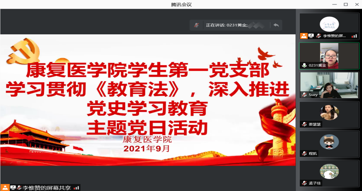 (文/图 高宇 郭梦迪)为认真学习贯彻省委十届十三次会议精神及《中华人民共和国教育法》研讨会的深刻内涵,落实党的教育方针。9月28日下午4点,十大外围足球平台官网 学生党支部联合开展“学习贯彻党的教育方针”线上主题党日活动。此次活动由分团委副书记、学生第三党支部书记高宇主持,学生第一党支部书记黄金老师、学生第二党支部书记张瑞雪老师及全体学生党员。
