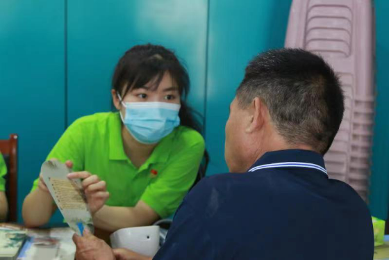 图为朝阳康复医疗服务团成员向村民介绍防艾知识