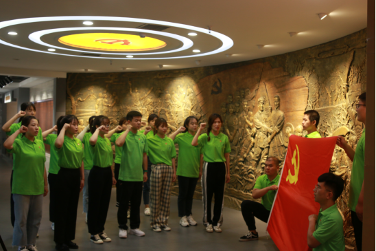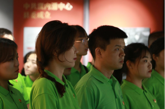 朝阳康复医疗服务团成员在纪念馆讲解员的带领下,以时间顺序为主线,参观了纪念馆内大革命、土地革命、抗日战争、解放战争、内黄革命先烈、红色沙区走出的党政军人物、今日内黄等版块,通过图片、雕塑、场景再现等多种形式,深入了解了各个历史时期沙区革命先烈为新中国成立英勇斗争、不懈奋斗的革命历程以及新中国成立后内黄县发生的翻天覆地的变化。小分队队员们在一张张珍贵的历史照片、一份份珍贵的历史文物面前驻足瞻仰,切身体验到沙区人民艰难悲壮的斗争历程,深刻体会了先烈们牢记初心使命、坚定理想信念、忠诚履职尽责的革命精神,接受了一场生动鲜活的“红色洗礼”!最后,朝阳康复医疗服务团成员在分团委副书记高宇同志的带领下,进行庄严宣誓。