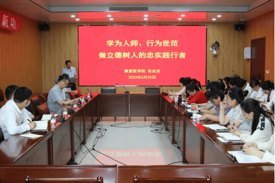 张运克书记首先对上半年学院的意识形态工作进行总结,并从党的二十大报告中“加强师德师风建设,培养高素质教师队伍,弘扬尊师重教社会风尚”出发,围绕“思想政治素质是师德师风建设的根本底线、教师职业行为准则是师德师风的基本要求、教师职业道德理想是师德师风建设的高位引领等三方面进行阐述,以违反师德师风的真实案例为素材告诫大家,我们的教育工作要以习近平新时代中国特色社会主义思想为指导,贯彻立德树人的教育方针,培养听党话、跟党走的时代青年;号召各位教师争做“四有”好老师,即做有理想信念、有道德情操、有扎实学识、有仁爱之心的好老师;号召各位教师要像爱护自己的眼睛一样爱护自己的声誉,要有底线思维,守住道德底线;希望各位教师要做学生的领路人,学生的知心人,要关爱学生,解决学生困难和学生交朋友;希望各位教师要发扬团结奋斗的团队精神,做好沟通和交流,要做到既相互尊重、又开诚布公,向张玉滚、张桂梅等优秀教育工作者学习,互学互鉴、共同提高,我们要把师德师风建设作为意识形态的重要内容,做到与重点工作同安排、同部署、同落实。