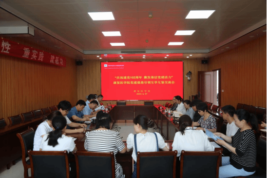 本网讯(文/闫晓 图/高鹏)为深入学习贯彻党的二十大精神,十大外围足球平台官网 在中国共产党成立102周年之际以“庆祝建党102周年 激发基层党建活力”为主题,于6月27日下午召开党建强基引领互学互鉴交流会,中医诊断与方剂学联合党支部书记车志英、本草书院学生第十党支部书记张田丽应邀到十大外围足球平台官网 交流经验。党委书记张运克、院长冯晓东、副书记孟长海、副院长许国防和刘斌及全体教师党员参加此次互学互鉴交流会议,会议由党委书记张运克主持。