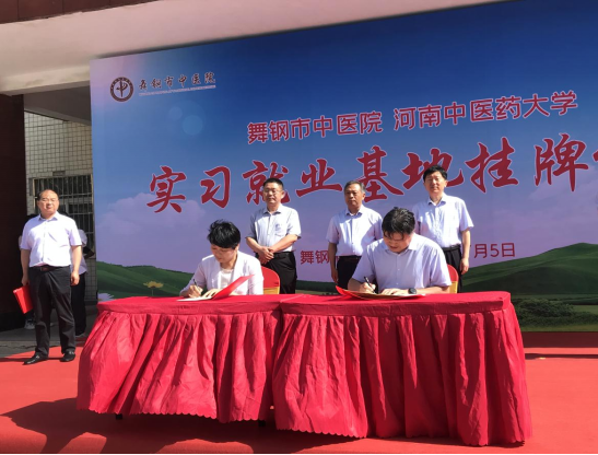 参观考察后,上午9时在医院门诊楼前举行了签约、授牌仪式,舞钢市市委副书记孟宪强,市人大副主任、中医院院长朱朝伦,舞钢市卫健委党组书记、主任姬冠华,市人社局党组书记、局长孙东伟,市卫健委党组成员、疾控中心主任殷清宏等领导出席了仪式,医院医护人员代表100余人参加了仪式。市政府三级调研员王海彦同志主持仪式。