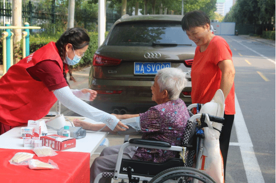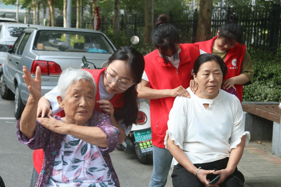 在老师的带领下,同学们有条不紊地进行着自己的工作,人员分布合理,各司其职,为社区居民测量血压、血糖、艾灸、针灸、耳穴和推拿按摩,帮助居民缓解疼痛,并提出一些养生知识。一些志愿者们与社区老人聊天沟通交流,气氛温馨自然。活动得到了社区群众的热烈欢迎和物业公司的大力支持,许多群众闻讯而来,在8:30——10:30两个小时的时间内,有100余名社区群众到现场体验大学生志愿者专业的中医健康服务,对志愿者到社区开展活动表示了支持和赞扬。