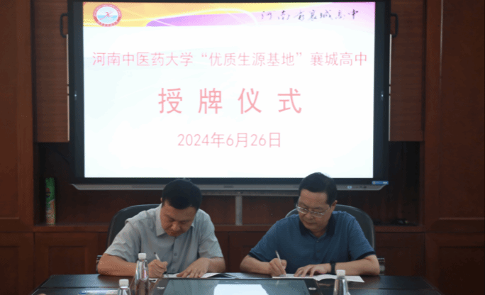 本网讯(文/程柯 图/张羽萍)为进一步加强我校优质生源基地建设,提升生源素质,加强与优秀中学的深度合作,我校于2024年6月26日上午在河南襄城高中隆重举行了“优质生源基地”的签约及授牌仪式。我校党委委员、副校长苗明三,发展规划与学科建设处处长孙可兴,十大外围足球平台官网 党委副书记李伟峰、副书记孟长海、副院长刘斌及辅导员代表,河南襄城高中党委副书记、校长付志崇,党委委员、副校长胡少方及校长助理代表等参加了活动。