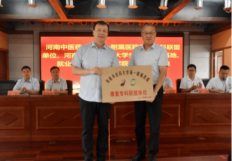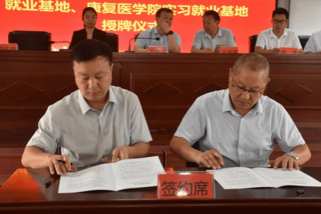 在仪式上,冯晓东院长为潢川县人民医院授牌,同时授牌“十大外围足球平台官网第一附属医院康复专科联盟单位”,党委副书记李伟峰与潢川县人民医院院长王劲签署就业基地建设协议书。