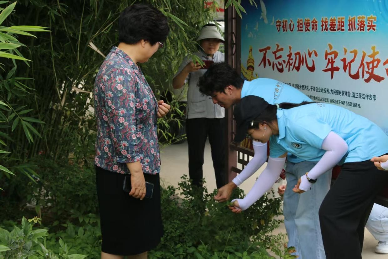 田间地头悟真知:汗水里读懂药材的生长密码。离开博物馆,实践团队走进禹州传统中药炮制技艺传习所与河南青山药业有限公司中药材种植基地。在这里我们见到了朱氏家族第四代传承人、“禹州传统中药加工炮制技艺”市级非遗传承人、青山药业总经理朱改莲。朱改莲总经理特意放下繁忙工作,带着队员们走进田间。“这是白芍,那边是紫苏,墙角下种的是何首乌……”她指着成片的药材,细细讲述背后的故事:这些品种能在这里扎根,源于朱清山老先生的毕生坚守,也离不开她走遍五湖四海的选种历程。