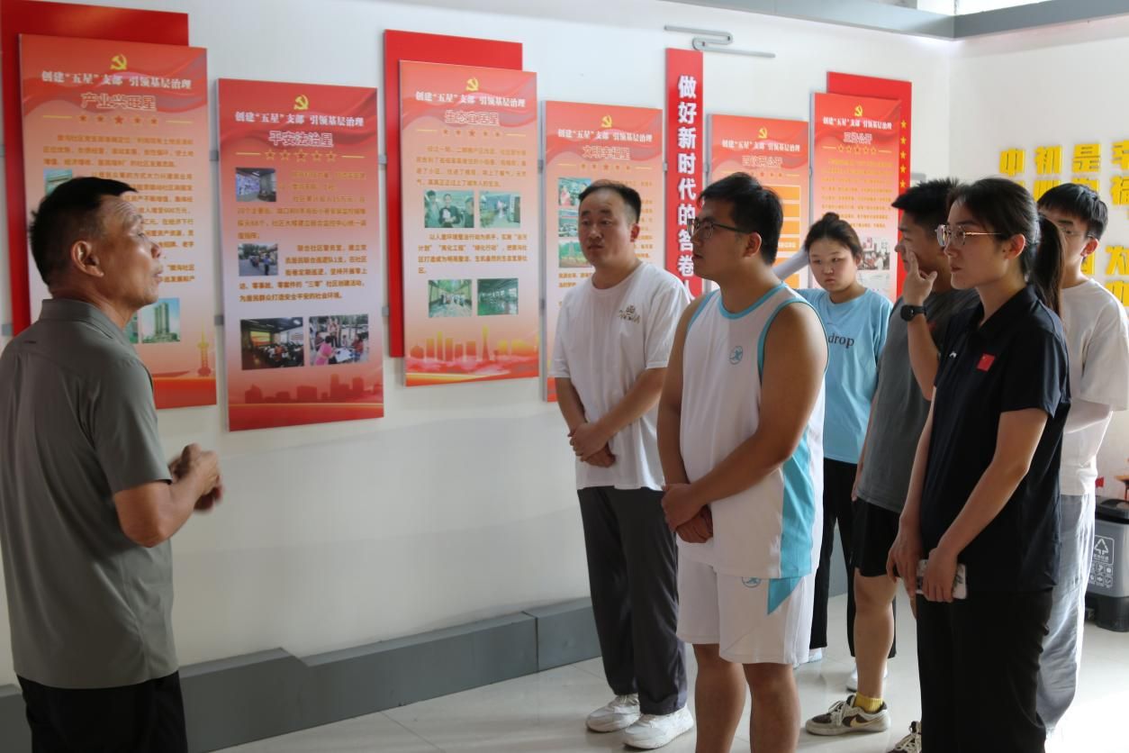 党建引领筑根基:解码精细化治理的“樊沟密码”。“社区治理的核心是把群众放在心上,把服务做到实处。”樊沟社区党支部书记安国明亲自带队,向师生们系统介绍社区治理的“底层逻辑”。在核心治理阵地,他结合社区发展历程,详解党建引领下的网格化管理体系——如何将社区划分为多个网格单元,通过“网格员+楼栋长+志愿者”的三级联动机制,实现政策宣传、矛盾调解、民生服务的“精准滴灌”;如何搭建“居民议事厅”“线上恳谈群”等多元平台,让居民从“旁观者”变为“参与者”,共同协商解决停车难、环境整治等民生小事。“从党建引领到多元共治,樊沟社区把‘人民至上’的理念转化成了可操作的治理方案。”参与研学的学生冯雅琛在笔记中写道,这种“小事不出网格,大事不出社区”的治理效能,让大家直观感受到基层治理现代化的实践力量。
